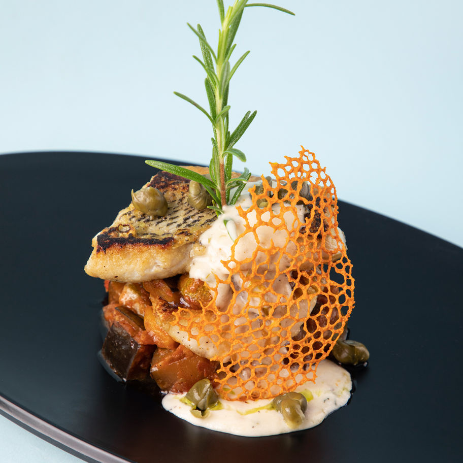 Grilled Fish Thyme lemon Butter sauce and capers- Ratatouille